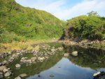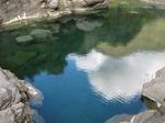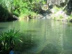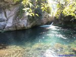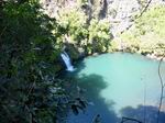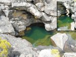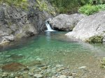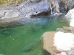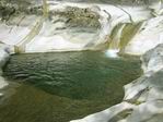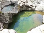 L'endroit est sauvage et certainement dangereux en période pluvieuse. Le bassin est très beau mais le fond est tapissé d'algues vertes incitant peu à la baignade.