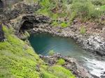 Ce vaste bassin entouré de taros et papyrus ressemble plus à une mare qu'à un bassin limpide invitant à la baignade. Il se nomme plus aisément le bassin gris que le Bassin Bleu. Il est surtout connu des amateurs de tunnels de lave qui sont obligés de le longer un peu avant de grimper la falaise vers le tunnel.