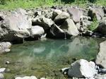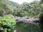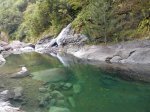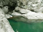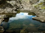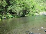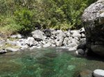 Bassin caractérisé par deux gros rochers qui surmontent le bassin d'eau très claire et calme qui donne envie de se baigner. Mais bien d'autres occasions se présenteront en redescendant la rivière.