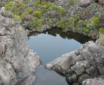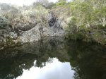 Pour voir ce petit bassin d'eau claire il faut descendre le lit de la Rivière des Galets à partir du sentier reliant la Nouvelle à Marla en direction du sentier de Grand Sable.