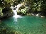 Petit bassin d'eau claire se prêtant peu à la baignade en raison de son exiguïté. En revanche, le décor qui l'entoure et la cascade qui l'alimente en font en endroit charmant.