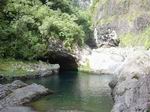 La Grande Ravine, au dessus de Grand Galet présente de magnifiques chutes d'eau et cette belle vasque recouverte d'une arche naturelle. Le sentier passe à quelques mètres au dessus de la rivière qu'on atteint aisément.