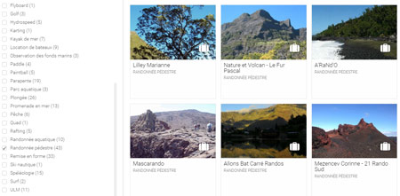La page ci-dessous pointe sur toutes les activités de l'île. Sélectionnez Randonnée dans la colonne de gauche.
