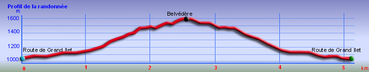 La randonnée débute une centaine de mètres avant la Ravine Roche à Jacquot, sur la route de la Mare à Martin. Avant le départ, au petit matin, ne pas hésiter à rouler un peu vers la Mare à Martin et stationner près de la mare. Elle est insignifiante mais permet de beaux clichés quand la brume s'envole au petit matin et que les pitons s'y reflètent (Photo 1). La piste est facile à repérer. Elle passe devant quelques cases et traverse des bois de filaos (Photo 3) ou des zones couvertes de chouchous qui ont tendance parfois à encombrer le passage. Les vignes marronnes et les longoses ne sont pas en reste pour tenter d'envahir la piste. Puis ce sont les jouvences, humides au petit matin, qui mouillent les chaussures. Les petits panneaux assez nombreux qui indiquaient la fenêtre ont en partie disparu mais il est difficile de s'égarer sur cette agréable piste en pente douce. Un regard vers le haut du rempart permet de repérer la Fenêtre au pied du Cimendef (Photo 3). De la piste, on a l'impression d'une muraille mais le sentier en lacets facilitera cette montée. On rejoint la Ravine Roche à Jacquot formée depuis moins de 50 mètres par la réunion de la Ravine Sèche et de la Ravine Casabois. Plus loin, une passerelle enjambe un affluent de la Ravine Casabois avant de pénétrer sous les grands filaos qui occupent une surface importante aux limites du Parc National (Photo 5). Très vite la muraille du rempart arrive et la montée débute sur le sentier en lacets courts et serrés aux marches consolidées par des rondins de bois (Photo 6). On retrouve bien évidemment les goyaviers qui envahissent lentement mais très sûrement la Réunion (Photo 7). L'inconvénient a ses avantages en juillet lorsque les fruits sont mûrs. Le sentier ne comporte pas trop de fortes pentes puisque les lacets sont parfois assez longs (Photo 8). Les premiers panoramas sur la Mare à Vieille Place, Grand Îlet et le Piton Plaine des Fougères apparaissent avec le soleil à l'horizon si on est parti tôt (Photo 9). Le Gros Morne se dévoile également mais on le verra dans sa totalité au sommet (Photo 10). Hormis les goyaviers, on retrouve ici la végétation classique du cirque: fougères, branles verts, lantanas, bois de couleurs ou bois de chandelle qui ne masquent pas totalement le paysage vers le Piton d'Anchain (Photo 11). La montée est surtout constituée de lacets faciles à négocier (Photo 13). Quelques parties plates, très courtes, permettent de reprendre son souffle (Photo 16). Des portions rocheuses nécessitent de très courtes escalades parfois glissantes. Des marches aident également à franchir les parties les plus pentues (Photo 17). Le sentier effectue un long détour vers la droite avant de revenir plein sud en direction de la Fenêtre. Les vues sur le Gros Morne s'élargissent (Photo 18). Le Piton d'Anchain ne cache plus le gîte de Bélouve qu'on devine à l'horizon au pied du Mazerin (Photo 19). La pente s'accentue, emprunte des zones bordées d'arêtes rocheuses verticales (Photo 20). Le sentier, très étroit par moments, est alors bordé de ces falaises de plus en plus présentes (Photo 21). Des marches taillées à même la roche permettent de grimper plus facilement même si la pente est encore forte. Les bois de couleurs et les branles l'emportent sur le reste des végétaux et les points de vue sont plus rares. On profite cependant des principaux pitons dans les trouées végétales, dont l'imposant Gros Morne. Puis la pente cesse en arrivant à la Fenêtre (Photo 23). De l'autre côté, au cœur du cirque, le Piton d'Anchaing dépasse au-dessus des nombreux villages. Celui de Grand Îlet, vu d'ici, semble très vaste (Photo 24). Les falaises rocheuses qui dominent le village font comprendre pourquoi il a fallu tout ce long détour pour arriver ici (Photo 25). La barrière en bois qui marquait le belvédère, vermoulue, a totalement disparu. Attention donc en grimpant sur les rochers pour la classique photo avec le panorama à l'arrière. Un oratoire vieillissant occupe une cavité à l'arrière. Un étroit sentier part à l'assaut de la falaise en direction de la Roche Ecrite mais cesse très vite dans la végétation. Sur la droite, l'impressionnante vallée du Bras de Ste-Suzanne tarde à voir arriver le soleil (Photo 26). Repérer un sentier qui débute près du vide en direction du Cimendef dont on devine le col à nos pieds (Photo 27). Si on décide d'effectuer un jour cette difficile ascension, ne pas hésiter à descendre jusqu'au col pour en repérer le départ. La descente est courte mais déjà beaucoup plus difficile que ce qui vient d'être pratiqué. Du belvédère, on remarque que l'ascension n'est pas à la portée de tous et il vaut mieux faire appel à un guide pour la rajouter à son palmarès (Photo 28). Plus difficile, un sentier beaucoup plus discret, très peu pratiqué, part sur la droite, au col, en direction du Bras de Sainte Suzanne et de Deux Bras. Le retour beaucoup plus facile car tout en descente emprunte le même itinéraire pour rejoindre Grand Îlet.