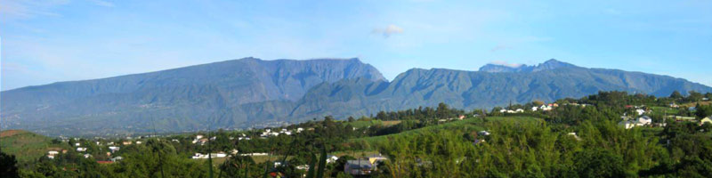 En roulant entre Saint-Pierre et Grand Bois sur la route nationale 2, on voit très bien vers le Nord ce piton qui semble n'être qu'une grosse colline verdoyante. A y regarder de plus près, il s'agit de l'immense gueule d'un cratère vieux de plus de 30 000 ans qui a façonné à son époque une partie du sud de l'Ile. La colline est la tête d'une énorme virgule (voir à gauche la photo satellite) qui se prolonge sur un bon kilomètre de long, entourant ce qui fut sans doute le fond d'un cratère occupé désormais par les champs de canne à sucre. En faire le tour constitue une randonnée banale empruntant une grande partie de routes goudronnées, en général boudées par les randonneurs. Se rendre au sommet en représente une autre plus sportive mais trop courte malgré la belle boucle de 2 km aménagée par diverses associations. L'idéal est donc de combiner les deux pour passer plus de deux heures dans cette zone de l'île. Un parking est aménagé sur l'allée du Piton de Mont-Vert à une centaine de mètres du début de la montée au piton. Se garer au nouveau parking aménagé avant le fond du cirque, rejoindre et grimper le Piton de Mont-Vert puis revenir au point de départ pour effectuer ensuite le tour complet. Le contraste est grand entre les deux boucles ; l'une se fait sur un étroit sentier parfois assez pentu sous le couvert des bois de la forêt semi-sèche, l'autre sur route et de nombreuses pistes à travers les cannes à sucre. A noter la présence d'une minuscule orchidée endémique de ce piton (Oeceoclades monophylla), donc très rare et fragile. Il est fortement déconseillé de quitter les sentiers afin de ne pas la piétiner.