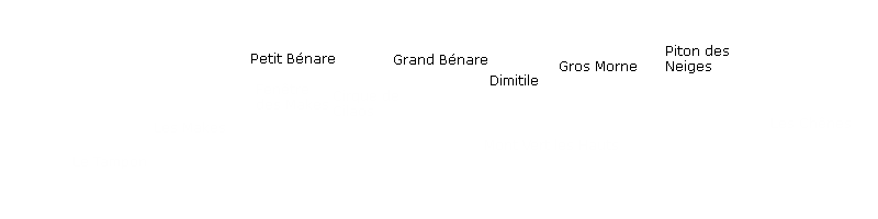 Montée au piton : La randonnée débute à la fin des champs de canne près d'une barrière fermant le chemin menant au cratère. Suivre le chemin et rejoindre les sentiers. L'un monte tout droit vers le rempart (non prévu sur cette fiche). Un autre part à droite et l'on rentrera par celui de gauche à la fin de la première boucle. Débuter par la droite, longer les cannes et quelques fascines de goyaviers (Photo 1). Au bout de 300 mètres de marche facile, on profite d'un beau point de vue sur l'océan et la ville de Saint-Pierre (Photo 2). Sur la droite du panorama, le sommet le plus haut domine la campagne (Photo 3). C'est de là-haut que débute un sentier descendant en très forte pente pour rejoindre le point de départ. Le sentier, large et agréable, se prolonge en grimpant parfois de manière un peu raide vers le sommet du piton (Photo 4). Outre les fougères bordant le sentier, on rencontre fréquemment des pandanus aux magnifiques racines (Photo 5). Quelques arbres biscornus peuvent servir de siège pour souffler de l'effort créé par cette première pente (Photo 7). On arrive à un banc en bois de goyavier qui permet de se reposer et profiter de la magnifique vue sur Grande Anse et Petite Île entourées de canne à sucre (Photo 8). Poursuivre sur la crête sur un sentier très agréable et assez plat (Photo 9). Prendre à droite au croisement rencontré plus loin. Il est possible que le sentier de gauche qui redescend au parking soit un peu délaissé. Poursuivre sur un beau sentier ombragé à travers les arbres jusqu'au sommet du Piton (Photo 11). Hormis quelques goyaviers on ne rencontre pas trop de plantes invasives. Le sol devient de plus en plus rocheux, obligeant parfois à lever haut le pied (Photo 12). De nombreux rochers bordent le sentier sans gêner le passage (Photo 13). A partir du sommet, la descente est rectiligne sur un sentier raide mais constitué de dizaines de hautes marches de bonne qualité (Photo 15). Prendre son temps pour ne pas trop solliciter les genoux. Profiter de la végétation variée dont certains bois de rempart remarquables (Photo 16). Ce sentier s'assagit au bas de la pente à travers les faux poivriers assez nombreux dans la zone (Photo 17). Il bifurque sur la gauche et rejoint le point de départ après quelques courtes dents de scie qui se passent sans effort (Photo 18). On s'approche de plus en plus des habitations que l'on devine dans la végétation. On profite aussi de quelques points de vue sur les champs et sur l'océan. Le sentier traverse de grandes surfaces de fougères bien plus agréables que les longoses des autres régions de l'île (Photo 19). Il descend une dernière fois en se rapprochant de hautes herbes occupant le pied du piton (Photo 20). Rejoindre le croisement des sentiers puis la piste et partir à droite jusqu'au parking. C'en est fini de cette boucle que les sportifs effectuent dans le sens des aiguilles d'une montre pour apprécier la montée vers le sommet (voir profil ci-dessous).