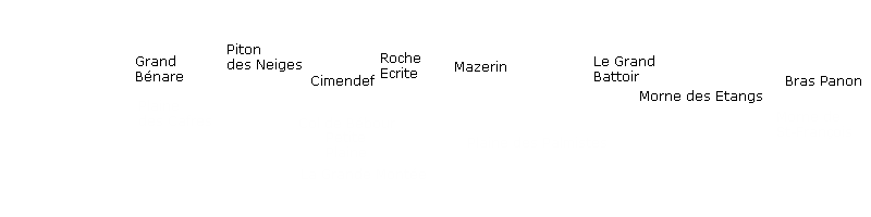 La randonnée débute au Piton de Sable dont le fond recouvert d'eau donne de beaux clichés de jour lorsque le Piton des Neiges s'y reflète. Le matin, très tôt, ce sont les nuages et le pylône du Piton Textor qui miroitent (Photo 1). Attention, il n'y a pas d'eau toute l'année mais on est assuré d'en voir après les forts épisodes pluvieux. Après cette balade semi-aquatique, rejoindre la route forestière du Volcan par n'importe quel itinéraire, comme sur la carte ci-dessous, pour bien débuter ce hors sentier de près de 10 km. Prendre la direction du Piton de Caille en filant plein nord sur des sentiers existants ou déjà en traversant la savane entourant le Piton Textor. Le centre du cratère du Piton de Caille, déjà escaladé lors d'une autre randonnée, s'atteint par un petit sentier de vaches rencontré en marchant sur le Sentier du Piton Textor. La pente est faible et le cheminement s'effectue un peu penché en raison des branches basses. La prairie qui en couvre le fond incite au bivouac malgré l'absence d'eau (Photo 2). Poursuivre vers le nord et cherchant le meilleur passage entre les plantes (Photo 3) et en repérant au plus vite la petite ravine qui grandit au fur et à mesure de la descente vers le cassé du Grand Bras Piton. On randonne sans difficulté en longeant la ravine ou ses abords dans les zones dénudées ou couvertes de petites plantes, principalement les branles verts (Photo 4). Les panoramas sur la Plaine des Palmistes et les grands massifs de la Réunion deviennent de plus en plus larges, du Piton des Neiges jusqu'au Mazerin (Photo 5). Plus on approche du cassé, plus il faut suivre le fond étroit de la petite ravine où les amateurs de natures mortes se régaleront des belles trouvailles (Photo 6). On parvient ainsi à une profonde vallée de 300 mètres de profondeur où l'on aperçoit le lit chaotique du Grand Bras Piton. Attention à la chute car la falaise est vertigineuse mais la vallée est magnifique (Photo 7). Pour rejoindre le Grand Bras Piton, rivière principale de la zone, il faut revenir sur ses pas et obliquer sur la gauche dès que le sol dénudé revient. Ne pas hésiter à descendre cette ravine basaltique offrant tous les 10 mètres une petite merveille de la nature. Attention tout de même lors des franchissements de plus en plus difficiles vers le cassé qui ne sont pas obligatoires. Le sentier, ou plutôt le passage, s'effectue par moments sur de belles plaques de lave jaunies par les oxydes (Photo 9). Repartir en remontant la ravine, le plus souvent dans le fond (Photo 10). On remarque sur la gauche des poteaux et une clôture barbelée qui semble sortie de nulle part (Photo 12). Rejoindre cette longue enfilade de poteaux réguliers et la suivre au plus près. Il faut parfois s'en éloigner d'une dizaine de mètres pour contourner une touffe de plantes, mais on la retrouve très vite. On arrive près d'une petite case en tôle (Photo 14) entourée de beaux tamarins (Photo 13) avant de rejoindre à nouveau le fond de la ravine (Photo 16). Remonter un peu sur le basalte puis obliquer sur la gauche pour entamer une rude montée vers le sommet du Piton des Treize Cantons. Il y a partout des sentiers de vaches et le but consiste à atteindre le haut par le chemin le plus court pour les sportifs ou le plus sinueux si la fatigue se fait. Le fond se trouve facilement après cette petite grimpette. On retrouve une nouvelle prairie qui tapisse le fond du cratère, fort heureusement délaissée de toute plante invasive (Photo 17). On a de ce bord de piton de magnifiques vues sur la Plaine des Palmistes (Photo 18). Le cheminement reprend dans les branles (Photo 19) pour se retrouver nez à nez avec cette longue clôture barbelée. Reprendre donc le chemin en longeant toujours au plus près sur une forte descente (Photo 20) bordée de magnifiques tamarins des Hauts aussi biscornus les uns que les autres (Photo 21). Même les arbres morts sont superbes. La clôture fait de nombreux zigzags et il suffit de la suivre sans réfléchir. Elle se termine à la Route Forestière du Piton de l'Eau. Traverser la RF, retrouver le sentier du Piton de l'Eau et le franchir pour garder à l'esprit le hors sentier total. Viser le petit piton, bien visible dans la végétation (Photo 22. Comme précédemment, chercher les meilleurs passages pour franchir le col entre deux nouveaux pitons. On retrouve sans surprise le Grand Bras Piton dont un affluent propose un petit coin très sauvage près d'un cassé de cascade (Photo 23). Ne pas hésiter à l'atteindre. On devine même une grotte en partie cachée par des tamarins maigrichons et de grands branles verts (Photo 24). A partir de là, on aperçoit certains virages de la route du volcan et des véhicules qui servent de repères. Marcher sur les meilleurs passages, souvent recouverts de lapillis (Photo 25) entre la route et le sentier du Piton de l'Eau. De minuscules ravines creusées dans le tuf orangé créent ce beaux paysages (Photo 26). Le pylône du Textor sert également de repère s'il n'y a pas de brouillard (Photo 27). Les balises rouges et blanches rencontrées en fin de ce long hors sentier indiquent qu'on a retrouvé le GRR2 qui remonte à l'Oratoire Sainte-Thérèse. Suivre le GR jusqu'à la route et au parking du Piton de Sable.