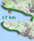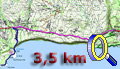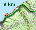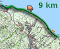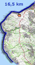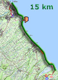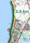 Contrairement à la précédente, cette dizaine de kilomètres peut souvent s'effectuer sur des pistes qui longent la plage. C'est donc une étape nécessaire mais assez reposante des kilomètres de galets des quelques heures précédentes. On utilise la totalité de la fiche.