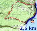 Filer vers le Baril en suivant les rochers et falaises du bord de mer sur un beau parcours battu par les vagues. On utilise uniquement la partie de la fiche le long du littoral à partir du Cap Méchant.
