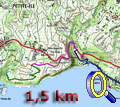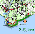 Au kiosque, prendre immédiatement à droite, descendre vers la mer et longer le sentier littoral jusqu'au début de l'étape suivante. On utilise uniquement la partie littoral de la fiche.