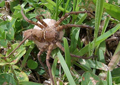 Heteropoda venatoria : Grosse araignée qui vit à la Réunion sans faire de toile et passe son temps à se promener pour trouver des insectes. Famille des Sparassidae. La femelle porte ses œufs dans un sac. Voir photo.