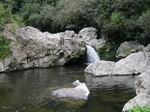 Petit bassin d'eau claire se prêtant peu à la baignade en raison de son exiguïté. En revanche, le décor qui l'entoure et la cascade qui l'alimente en font en endroit charmant.