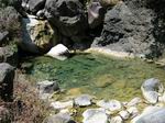 Bassin caractérisé par deux gros rochers qui surmontent le bassin d'eau très claire et calme qui donne envie de se baigner. Mais bien d'autres occasions se présenteront en redescendant la rivière.