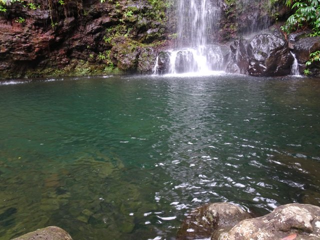 C'est l'ultime bassin de la courte ravine finissant sa course dans le Bras de Saint-Paul. Trop peu d'eau pour la baignade mais l'endroit se prête à une pause casse-croûte lors de la descente de la rivière.