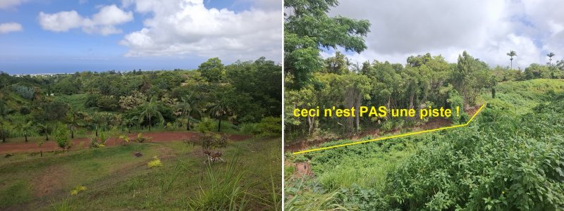 Section "Le Plate / Chemin 4" sous effectuée. Le sentier du bassin Missouk commence au niveau de bambous coupés (photo 1). Le sentier est partiellement caché par la végétation (photo 2), mais on trouve le bassin assez rapidement.