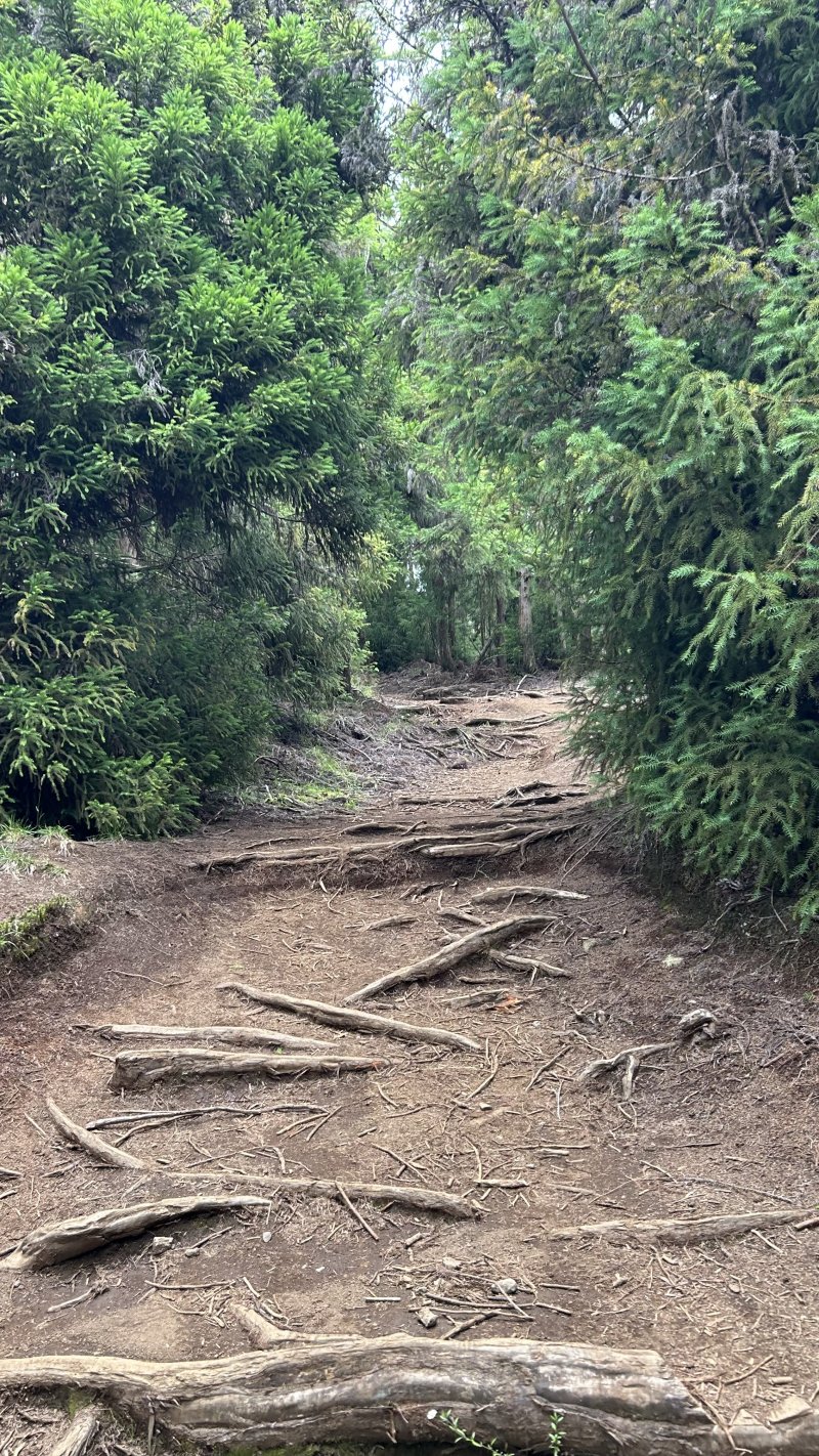 Suite de la rando vers le point de vu. Aucune visibilité à cause des nuages.