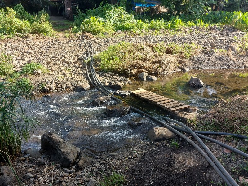 2h de descente jusqu'au village. On s'est baignés près de la passerelle vers le sentier de la caverne des hirondelles.