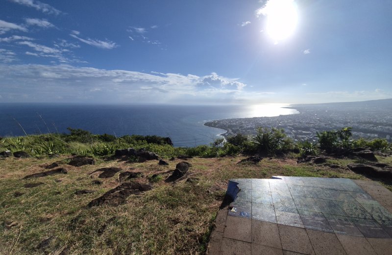 Il fait très chaud sur ce parcours en été mais vraiment ca en valait la peine, une super découverte. Nous avons légèrement modifié la montée en trace directe dans les champs de canne au plus près de la ravine (là où la trace fait un grand coude juste avant le niveau du lotissement Dioré, nous avons pris tout droit) et au retour nous avons pris la trace randopitons et la forêt d’eucalyptus. Du coup, on a fait 20,5 kms sur nos gps respectifs.