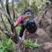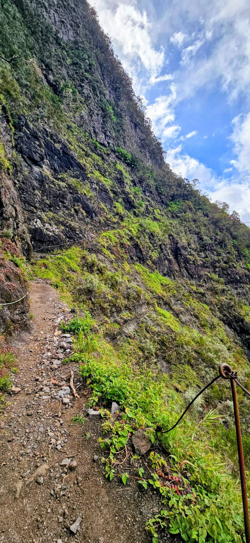 La descente est difficile, a fortiori sa première moitié. Comme décrit dans un commentaire précédent, un éboulis a emporté une partie du sentier (à approximativement un tiers de la descente), ce qui rend le passage dangereux, mais des cordes fixes ont été installées et j'ai décidé de leur faire confiance, ce qui m'a permis de passer.