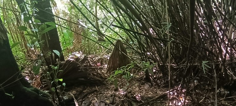 Adepte du hors sentier à la Réunion, se faufiler à travers 4les bambous est très compliqué, et la pauvreté de ce qui l'attendait à la fin ne m'a pas pousser à continuer : donc demi tour.