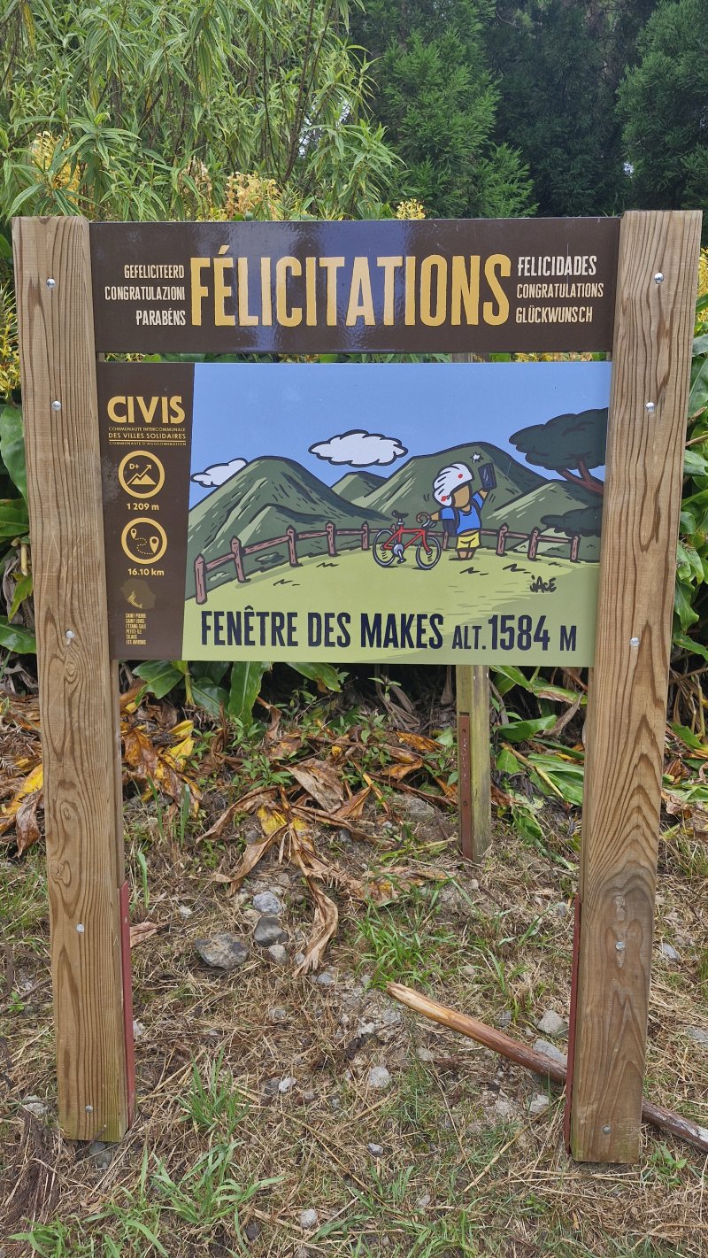 Là haut, plus de croix mais une belle vue. Étonnamment, la végétation n’a pas trop poussé et ne cache pas plus le point de vue qu’avant. En revanche des tonnes de toiles d’araignées. On a ramené des cheveux blancs au cas où on n’en avait pas assez!