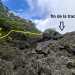 La descente est difficile, a fortiori sa première moitié. Comme décrit dans un commentaire de la 1618, un éboulis a emporté une partie du sentier (à approximativement un tiers de la descente), ce qui rend le passage dangereux, mais des cordes fixes ont été installées et j'ai décidé de leur faire confiance, ce qui m'a permis de passer.