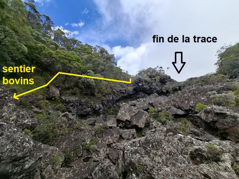 @Alonbatcare et Walking Dog 974, La rando « Du piton de Sable au Piton des 13 Cantons… » permet d’arriver au cassé par un « Affluent » du Grand Bras Piton un peu plus à l’ouest. Si ma mémoire est bonne j’étais parvenu au cassé en restant en rive droite du Grand Bras Piton mais en restant au-dessus de la ravine, le long de barbelés.