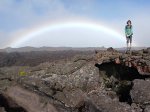 Dans le même domaine mais issues d'éruptions plus récentes, on rencontre parfois des sculptures de gratons comme ce guetteur aux jumelles fixées sur l'horizon, scrutant l'arrivée de randonneurs ou une nouvelle éruption.