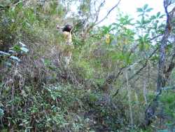 Fine chute qui tombe en escaliers dans un grand bassin d'eau claire. Accès très sportif pour ceux qui voudraient s'y baigner. En milieu de journée, l'ombre de la passerelle coupe la cascade en deux parties (Voir la photo sur la randonnée qui monte à la pierre gravée du Tapcal)