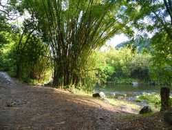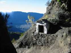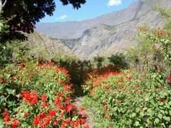 Photo 1 : La Grotte du premier passage, en fin de parcours du circuit qui longe la Rivière des Marsouins à l'Ilet Coco Photo 2 : Une des trois roches qui ont donné leur nom à la cascade qui coule à leurs pieds dans le Cirque de Mafate Photo 3 : Dans le lit de la Rivière des Galets entre Cayenne et Deux Bras Photo 4 : En franchissant le Bras Rouge entre l'Ilet à Cordes et Cilaos .