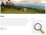 Cette courte boucle permet de s'évader dans les Hauts de Bras Panon pour retrouver un peu de fraîcheur à 700 mètres d'altitude. Plusieurs sentiers très connus passent par l’Éden. Celui du Bras des Lianes est long et difficile, abandonné par l'ONF ; celui de la Caroline est plus court, glissant et encore en bon état. La zone est connue pour sa petite plantation de thé et les explications qui s'y attachent et pour sa belle aire de pique-nique verdoyante abrita,t bambous, azalées et camélias (photo 11). Les champs ont été recouverts de fougères depuis des décennies. On retrouve quelques pieds de thé encore sauvages mais on passe souvent devant sans s'en apercevoir,surtout s'ils ne sont pas en fleurs. On peut, si la route est ouverte, aller jusqu'au début du sentier en véhicule mais laissons cette manière de visiter la région aux pique-niqueurs chargés de marmites. I est même possible de rallonger en partant directement du parking de la Cascade du Chien, surtout que la route, de plus en plus défoncée, met à mal les véhicules.