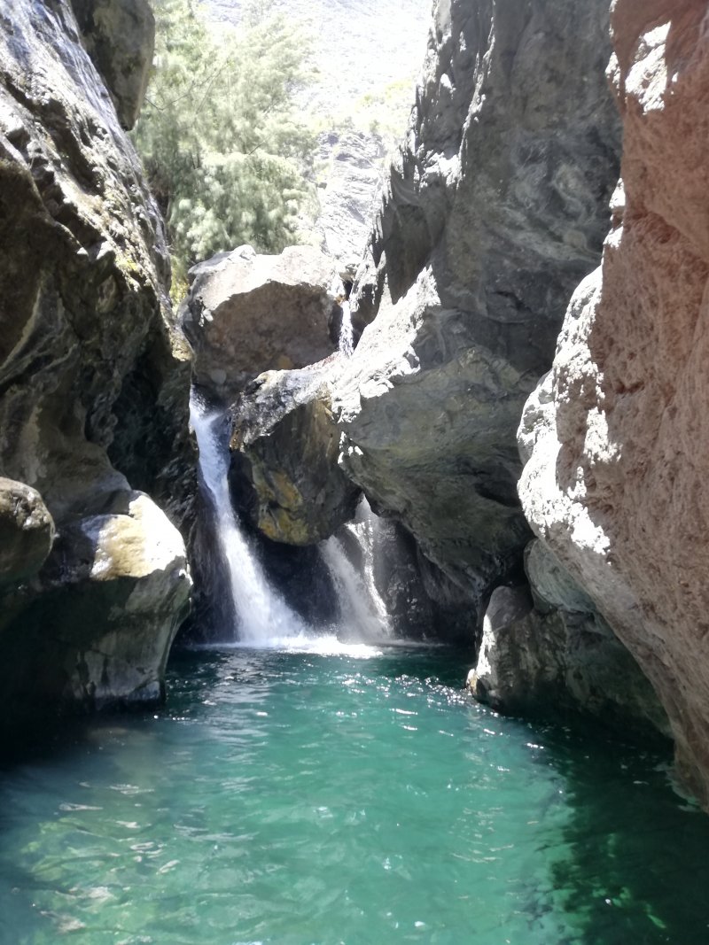 Par manque de temps nous n'avons pu aller que quelques mètres après la grotte bassin cascade du gros rocher posé en plein milieu. Là nous avons pu nous baigner dans un bassin agréable avant de rebrousser chemin.