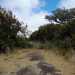 La randonnée débute ici par la route du Volcan qu'on descend sur un kilomètre avant d'entamer la longue traversée de la forêt de cryptomerias. On peut également commencer directement à la piste sous les conifères ou même par les prairies car le sens importe peu. Déjà, du parking situé à une cinquantaine de mètres de la piste, on bénéficie de superbes panoramas sur le Piton des Neiges et toute la Plaine des Cafres (Photo 1). La distance jusqu'au départ de la piste de la Grande Ferme est courte avec moins d'un kilomètre mais la circulation peut être importante par beau temps. Marcher au plus près du fossé. Après un dernier virage serré, on aperçoit le début de la piste fermée par une barrière. Elle commence sous des cryptomerias et ne les quittera qu'à mi-parcours pour entamer la traversée des prairies d'élevage (Photo 4). On marche à plat puis sur une pente légère en commençant une longue série de virages bordés des conifères. Certains semblent souffrir et jaunissent un peu mais ils sont régulièrement abattus (Photo 5). Les trouées sont rares sur la campagne environnante du côté de la Petite Ferme (Photo 6). La piste est agréable dans l'herbe rase ou les petits graviers (Photo 8). On peut pénétrer dans la forêt mais les troncs sont serrés, la lumière a du mal à passer et le sol est recouvert de branchages (Photo 9). Un peu partout, dans les arbres situés en bordure de piste, pendent des fleurs de passiflore banane (Photo 10). La fleur est belle et le fruit comestible mais on voit bien qu'elle se plait ici et à tendance à tout recouvrir. Des bornes vieillissantes permettent de mesurer la distance parcourue sans avoir à se munir de GPS, inutile sur cette sortie sur piste (Photo 11). On remarque également quelques vieux tamarins, aux branches couvertes de mousse et de petites fougères, qui souffrent beaucoup de l'ombre créée par les grands arbres (Photo 14). Les bringeliers envahissent également les abords (Photo 13). Heureusement, les engins passant sur la piste en empêcheront la prolifération. La descente se poursuit, toujours en pente faible et on parvient à une réserve de 500 m3 destinée à la lutte contre l'incendie (Photo 15). Cette réserve marque la fin de la descente. On poursuit, toujours sous les cryptomerias, en légère montée. On passe de nombreux radiers enjambant la vingtaine de petites ravines qui s'étalent sur le parcours. Le pin du Mexique se retrouve assez souvent en bordure de piste sans savoir s'il a été planté ou s'il s'est semé naturellement (Photo 16). Les virages de la piste continuent. Les petits raccourcis qui permettent de couper les lacets sont difficiles à trouver et encore plus à suivre et doivent donc être évités. Sur la droite, près de cinquante ruches sont groupées dans les hautes herbes (Photo 18). Les abeilles sont nombreuses et non belliqueuses mais il faut tout de même éviter de s'approcher pour les empêcher d'effectuer leur tâche. On sait que la piste dans les cryptomerias est bientôt terminée lorsque elle s'élargit, qu'elle se couvre d'herbe et de bouses de vaches (Photo 19). La piste part à 340° sur la gauche et il ne reste plus qu'à l'emprunter pour rejoindre le point de départ. On passe une ravine un peu plus visible que les autres (Photo 20) et les cryptomerias diminuent puis disparaissent complètement aux premières prairies. Une barrière ferme la piste pour éviter aux vaches de partir dans la forêt (Photo 21). La piste monte désormais lentement dans les prairies où paissent ou ruminent de beaux troupeaux. Si on marche doucement ou en silence, on aperçoit ça et là des cailles et des perdrix malgaches (francolins) qui filent en courant se cacher derrière les grandes herbes. De beaux tamarins des hauts parsèment les prairies, leur donnant un air champêtre très agréable. On voit très bien la lisière de la forêt de cryptomerias qu'on traversait il y a moins d'une heure et une bonne partie de la Plaine des Cafres à l'arrière (Photo 22). Plus loin, on aperçoit même quelques villes littorales (Photo 23). La piste, plus fréquentée par les tracteurs que la précédente comporte des bandes de roulement pour une marche facile et rapide (Photo 26). Le paysage sera toujours le même jusqu'à la RF du Volcan avec des tamarins dans les prés et des vaches qui regardent passer les randonneurs (Photo 27).