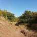 La randonnée débute au plus près du départ du Chemin des Anglais où les places sont souvent rares pour stationner. Préférer la Rue Raymond Mondon ou la Route de la Montagne. La montée est immédiate sans aucun échauffement sur une large piste pavée qui effectue de nombreux lacets sous les tamarins (Photo 1). Il faut passer une douzaine de ces lacets avant de parvenir au plateau pour emprunter de larges tronçons pavés de très bonne qualité (Photo 2). En se retournant, on bénéficie de beaux points de vue sur la ville de la Possession et celle du Port (Photo 3). Marcher 500 mètres avant de commencer les recherches du sentier remontant à la Ravine à Malheur. Aucun repère ne permet de s'assurer du bon endroit si ce n'est un départ de trace dans les herbes ou quelques vieilles rubalises brûlées par le soleil. Il faut un œil averti pour se convaincre du bon passage (Photo 4). Viser un tamarin des bas assez caractéristique car il est le seul touffu de la région (Photo 5). S'en approcher et le contourner par la droite, suivre les bribes de sentier recouvertes d'herbe ou la trace du GPS pour rejoindre en quelques minutes le début correct du sentier qui ressemble surtout à une petite ravine caillouteuse (Photo 6). A partir du moment où l'on rencontre cette trace, il n'y aura jamais plus à se poser de question car le passage est bien marqué à travers les chocas et les faux poivriers qui dépassent rarement les trois mètres de haut (Photo 7). On devine même par endroits de larges passages donnant à penser qu'il existait jadis une piste (Photo 8). Vers le village, les fougères se multiplient ainsi que les chocas (Photo 9). Les poules et pintades de l'élevage qu'on devine au bruit des volailles confirme la fin proche de la montée. On arrive à une grosse touffe de bambous. Le sentier se poursuit tout droit tandis qu’un autre part sur la gauche dans un pierrier. Emprunter ce dernier, traverser des zones très encombrées de chocas (Photo 10) et de grandes surfaces de fougères. Les curieux emprunteront le sentier partant sur la gauche pour rejoindre la Ravine à Malheur. Le sentier est acrobatique mais court. Il se termine à un bassin mais ne semble pas se poursuivre dans les falaises de l'autre rive (Photo 11). Après avoir fait demi-tour, reprendre le sentier principal qui se termine à un champ de maïs près d'une habitation. Le passage est libre à travers le lopin et rejoint immédiatement une piste herbeuse qui monte en direction de la RD41 (Photo 13). On assiste de loin au ballet des pétroliers et porte-containers qui attendent leur tour de passage au port (Photo 12). A la Route de la Montagne, prendre à gauche et marcher 250 mètres avant de partir à gauche sur le Chemin de la Petite Chaloupe en direction du terrain de sport et d'entraînement des motards (Photo 14). Passer entre le terrain de sport et la piste tout terrain (Photo 15). Repérer parmi les nombreux croisements, celui qui semble le plus naturel pour partir vers l'est. Il est large, bordé de fougères et presque plat (Photo 16). Il effectue une large boucle afin de se rapprocher de la vallée de la Grande Chaloupe (Photo 17) en traversant les zones de terres rouges si communes dans cette région de l'île (Photo 18). La piste DFCI est impossible à manquer malgré le nombre de circuits qui se recoupent partout. Après la première montée de début de boucle, d'abord aléatoire, puis celle plus sportive avant d'emprunter le dernier sentier cheminant à plat, cette descente s'avère une promenade de santé (Photo 19). La piste descend constamment en direction de l'océan qu'on a toujours sous les yeux tout comme les vallées de chaque côté (Photo 20). On peut emprunter des raccourcis entre les lacets mais ils demandent plus d'attention. Le plateau, sans doute cultivé jadis, est désormais totalement recouvert de plantes invasives (Photo 21). Partout, de chaque côté de la piste, sont plantées des espèces végétales afin de reboiser les collines. On frôle au passage quelques réserves d'eau protégées par des planches (Photo 22). A tout moment, on bénéficie sur la droite de beaux points de vue sur la Ravine de la Grande Chaloupe (Photo 23), plus impressionnants que ceux de l'autre côté de l'arête. De fréquents défrichages permettent aux nouvelles plantes de tenter leur chance mais on en rencontre, hélas, de nombreuses desséchées dans leur grillage de protection. Une dernière citerne se situe en fin de piste d'où l'on a une vue globale sur ce qui vient d'être parcouru (Photo 24). Elle est aussitôt remplacée par un sentier étroit mais facile à suivre dans les arbustes et hautes herbes (Photo 25). La marche est rapide et l'on entend de loin les rires et discussions des nombreux marcheurs empruntant le Chemin Crémont que l'on rejoint au plus près du point de vue sur la Grande Chaloupe (Photo 26). Après une petit coup d’œil sur ce hameau isolé et sur les travaux de la nouvelle route, prendre à gauche et partir en direction de la Possession. Le retour s'effectue en totalité sur ce classique de la région Nord en sautant de pierre en pierre. Certaines portions sont en très bon état, d'autres, plus herbeuses doivent être régulièrement tondues, d'autres hélas se déchaussent inexorablement (Photo 27). Il ne reste parfois que la bande de pierres plates au milieu de la chaussée (Photo 28). Quelques fortes descentes pour franchir des ravines sont suivies de rudes montées mais on parvient assez rapidement à la Possession, fin de cette boucle.