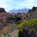 La randonnée ne permet pas de découvrir beaucoup d'espèces inconnues, excepté ces dizaines de pieds de clématites qui poussent sur les flancs de la Pente Zézé et dans les parages (Clematis mauritiana, liane marabit, 10ème vignette). On retrouve partout le branle vert, le gris, l'ambaville qui fleurit jaune. Quelques petits bois de rempart luttent pour trouver la pitance qui les rendra aussi grands que ses voisins, plus bas. On trouve même des fraises des bois qui tentent de coloniser des zones tellement sableuses qu'on se demande de quoi elles se nourrissent. Mais hélas pour la nature et tant mieux pour les yeux : ce sont surtout les bois brûlés par les incendies récents ou anciens qui donnent les plus belles sculptures ou natures mortes. On en rencontre du premier pas effectué en montant le Piton de Sable jusqu'au Textor où a sévi l'incendie le plus récent.