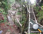 Les photo 17 et 18 montrent l'échelle en bois juste avant la Ravine Montauban. Cette échelle est toujours présente mais a été surmontée d'une autre en aluminium. Dommage pour les amateurs d'édifices lontan, tant mieux pour les amateurs de sécurité. Une bonne chose dans cette modification : le sentier doit être pratiqué sinon pourquoi de telles dépenses pour un sentier méconnu. Merci à Jacques-François pour les infos et photos.