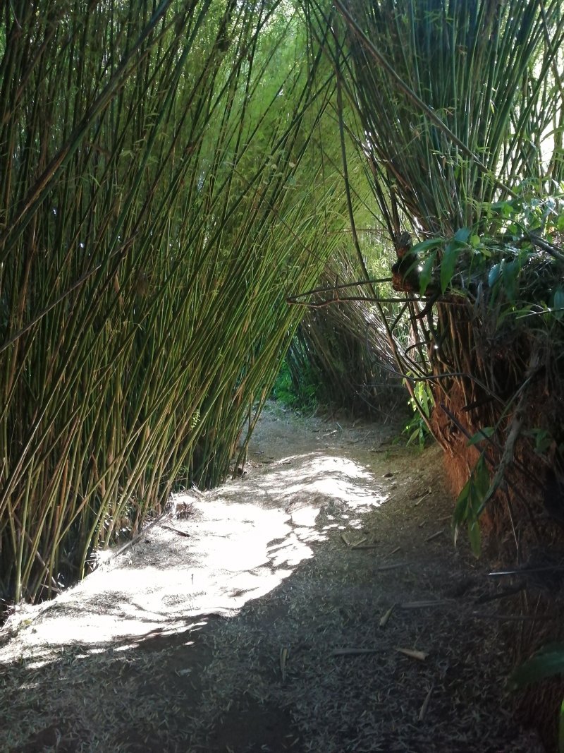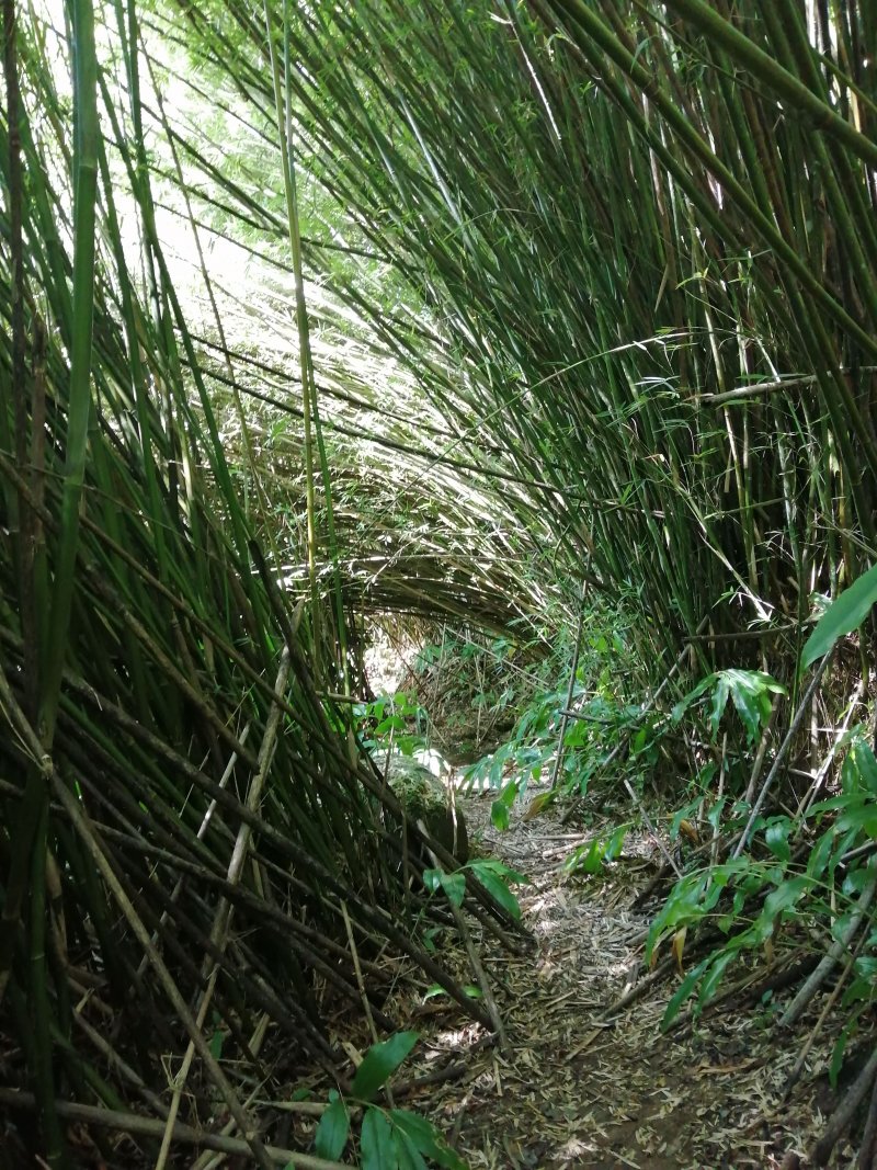 On passe alors sur un sentier frais, souvent bordé de longoses et de bambous, puis de goyaviers et de sabre paille (PHOTO 1)