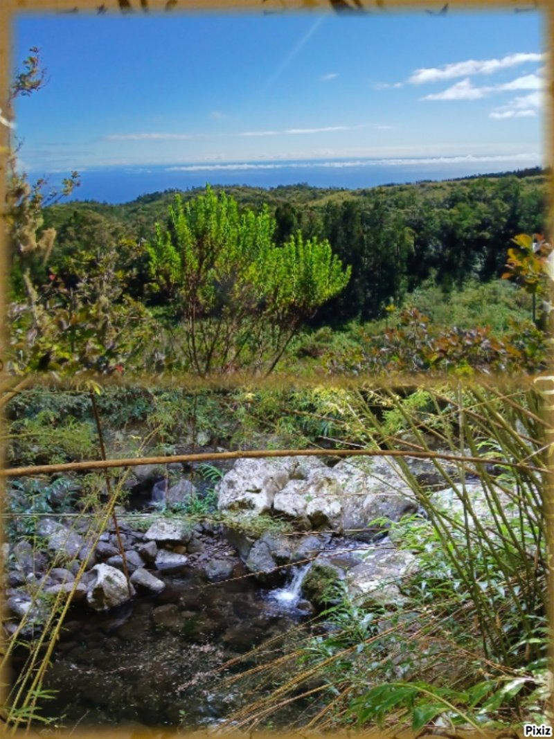 Les points de vue sont rares, mais assez jolis et le franchissement d’une ravine en eau (la Ravine Boucan ou Bois d’Oiseau, à voir) , est agréable et propice à une petite pause goûter pour profiter du chant de l’eau (PHOTO 3).