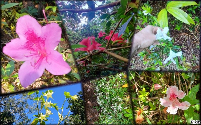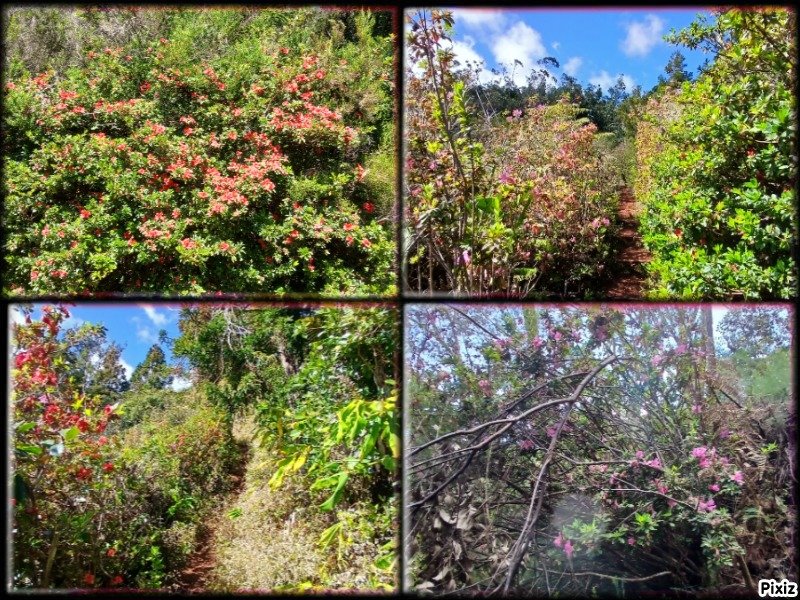 Je n’ai certes pas eu droit aux goyaviers,absents en cette période, mais j’ai reçu en échange des massifs d’azalées rouges, roses, et même blanches, (depuis une partie de Laverdure jusqu’au magnifique sentier de retour qui longe le Bras Mahot), en compagnie de jouvences et même de deux camélias aperçus sur le sentier Laverdure….(PHOTOS 4 et 5).