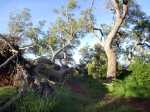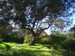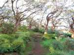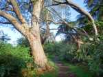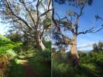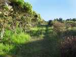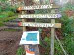 La randonnée débute ici au premier parking de la zone qui en comporte plusieurs. Aussitôt le petit escalier franchi, on se retrouve face aux panneaux indiquant plusieurs sentiers (Photo 1). Prendre celui de gauche en direction du village et passer entre des tamarins, dont un énorme qui n'a pas résisté au dernier coup de tempête (Photo 2). On se retrouve rapidement à un grillage entourant le domaine pour profiter sans obstacle des vues sur le Piton de la Ravine Blanche et le village éponyme (Photo 3). Les parterres fleuris au départ du Sentier Zabeille laissent présager d'une belle balade (Photo 4). Hélas, la large allée remontant le long des propriétés est peu fréquentée et encore moins entretenue (Photo 5). Heureusement, c'est à partir de ce parcours que l'on a les meilleurs panoramas sur les plus hauts sommets de l'île (Photo 6). La rosée du matin sur les herbes a tôt fait de mouiller les pieds, surtout en cheminant à l'ombre (Photo 7). La trace est toujours visible et chacun jugera en fonction des premiers mètres ou des projets de la matinée si cela vaut la peine de l'effectuer. Une fois au sommet, redescendre vers l'entrée et repartir sur le circuit bien plus agréable qui remonte à nouveau avec quelques petites marches (Photo 8). Plus haut, on peut même souffler sur des portions planes (Photo 9). Puis on remonte à nouveau en longeant parfois de grands tamarins terrassés par le vent (Photo 10). Même faute d'entretien, le sentier reste large et facile à suivre (Photo 11). Les arbres rencontrés sont beaucoup plus grands et beaux que sur ce pauvre sentier Zabeille (Photo 12). Le circuit alterne descentes et montées séparées par endroits de moins de 10 m. On quitte les tamarins pour traverser une zone envahie d'acacias noirs dont beaucoup traînent au sol (Photo 13). A l'approche du bois d'eucalyptus les renouées du chinois ont envahi les abords du sentier (Photo 14). On parvient plus haut à la ferme photovoltaïque qu'on devine derrière les clôtures. Les eucalyptus permettent de marcher un peu à l'ombre avant d'entamer la descente suivante (Photo 15). Les arbres, touffus et très hauts, ont également souffert des épisodes venteux et certains arbres sont ébranchés (Photo 16). Quelques racines ne ralentissent pas la marche sous les grands arbres (Photo 17). Dans la dernière descente de cette sortie, on retrouve de plus en plus de grands tamarins tortueux (Photo 18 et 19). Certains semblent ne jamais avoir souffert pour le plus grand plaisir des yeux (Photo 20). Aux croisements de sentiers, rien de plus facile que de poursuivre en lisant les pancartes car les panneaux, eux, sont rares à être encore lisibles (Photo 21). Le sentier bordé de grands arbres est toujours aussi facile (Photo 22). On retrouve de nouveaux tamarins couchés au sol qui continuent cependant à vivre (Photo 23). Après un dernier festival de tamarins majestueux (Photo 25 et 26), on se rapproche de la route au milieu des fleurs, dont de hautes agapanthes et de grosses touffes d'hortensias bleus (Photo 27). La boucle prend fin à la route que l'on peut rejoindre par plusieurs sentiers passant près des kiosques de pique-nique (Photo 28).