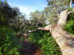 Plusieurs associations se sont succédé depuis 15 ans pour nettoyer le petit bois de tamarins des Hauts de la Ravine Blanche. Les arbres sont beaux sans être exceptionnels mais c'est toujours un plaisir de cheminer à l'ombre de cet endémique qui a tant souffert des incendies aux alentours du Maïdo et des cyclones . Cinq parcours ont été aménagés et sont balisés de plusieurs couleurs : parcours de santé orange de 3030 m, sentier marmaille mauve de 1030 m, parcours pédestre rouge de 5200 m, sentier botanique blanc de 1270 m sans oublier le petit dernier : le très court sentier Zabeille. Cette fiche présente un circuit qui emprunte le sentier Zabeille, le parcours santé puis une partie du circuit rouge afin de pouvoir marcher plus de 4 kilomètres. Le Sentier Zabeille était un beau projet avec plantations d'endémiques et création de jardins fleuris. Hélas, avec le temps, cette partie ouest de la zone boisée est tombée en friche. Les sentiers sont toujours là mais, par manque de passage, les hautes herbes mouillent les vêtements avec la rosée du matin. Le circuit longe plusieurs fois le Bras Creux sur ses deux rives et chemine ensuite de tamarins en eucalyptus pour rejoindre de superbes petits coins destinés au pique-nique. Inutile de prévoir un GPS ou une application mobile car les balises et panneaux de situation sont si nombreux qu'il faudrait le faire exprès pour s'égarer. En début et en fin de parcours, on bénéficie d'un beau panorama sur les montagnes du Dimitile, le Grand Bénare et même le Piton des Neiges en partie caché par le Piton de la Ravine Blanche.