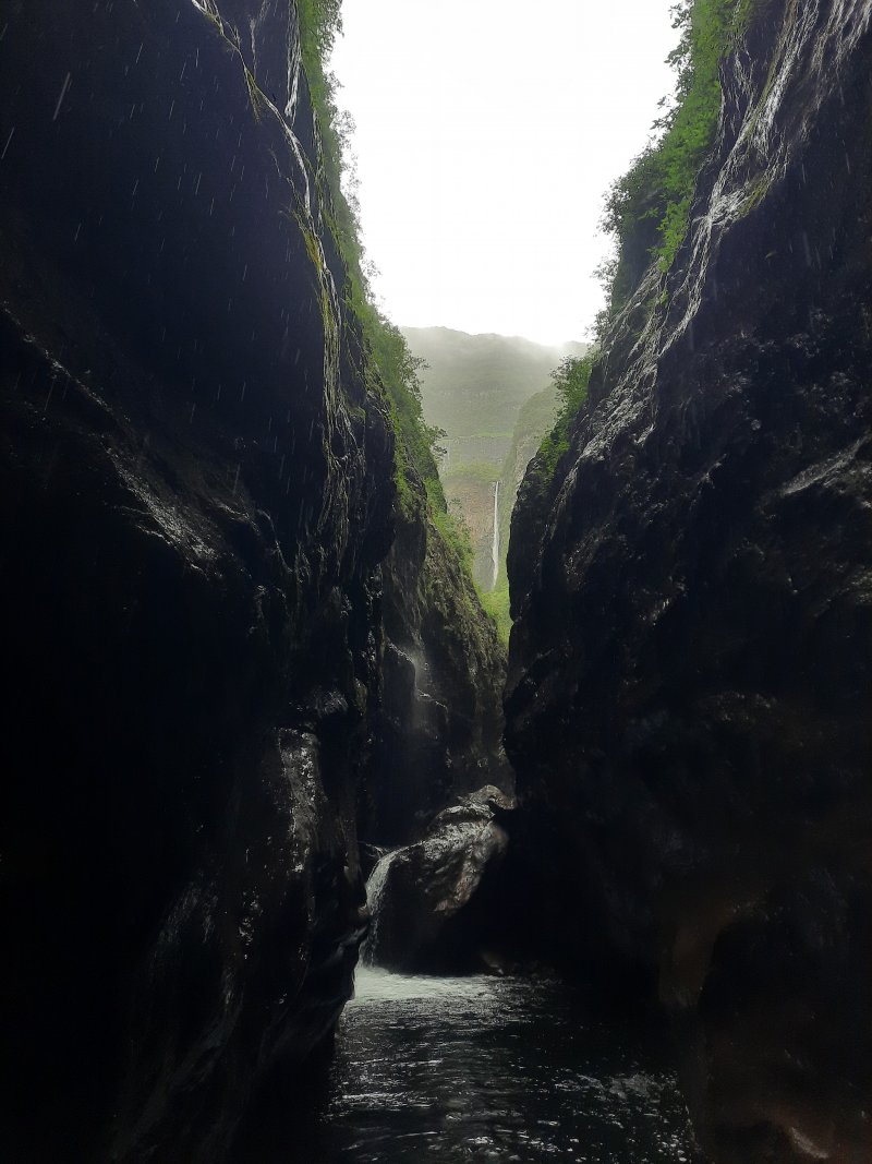 Ceux qui veulent poursuivre vers les hautes cascades du Trou de Fer devront abandonner tout le matériel et revêtir une tenue de baigneur pour franchir ce rocher et nager longuement dans un long bassin. (Pour de véritables sensations, contacter des équipes de canyonistes qui ont cette sortie à leur catalogue).