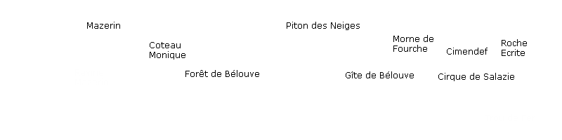 Se rendre à la Plaine des Palmistes puis emprunter la route de Bébour-Bélouve - Rouler jusqu'au Mazerin et se garer au parking du Coteau Monique, juste avant la barrière métallique - Marcher un peu sur la route en direction du gîte et bifurquer à droite sur le Sentier de l'Ecole Normale - Longer ces longues portions de planchers et rejoindre la Grande Mare - Poursuivre en direction du Trou de Fer mais bifurquer sur le premier sentier rencontré à droite - Suivre ce sentier, des cryptomerias puis une courte portion de la Ravine Mazerin - Traverser la rivière sur les cailloux et remonter dans la forêt - Suivre le lit de l'affluent de la Ravine Mazerin et enfin le sentier abrupt qui rejoint le bord du rempart - Profiter du premier point de vue (photo 12) dans la montée puis poursuivre vers Bras Panon jusqu'au point de vue principal (photo 14) - Reprendre le sentier en sens inverse, descendre le vertigineux coteau, le fond de la ravine et enfin le sentier qui mène à la Ravine Mazerin - Traverser la ravine, poursuivre sous les cryptomerias et atteindre le Sentier de l'Ecole Normale - Prendre à droite jusqu'au troisième point de vue sur le Trou de Fer et profiter du spectacle - Retourner en arrière et tourner à droite sur le Sentier du Trou de Fer - Au croisement vers le Gîte de Bélouve, prendre la piste, l'allée cavalière puis la route pour rejoindre le véhicule.
