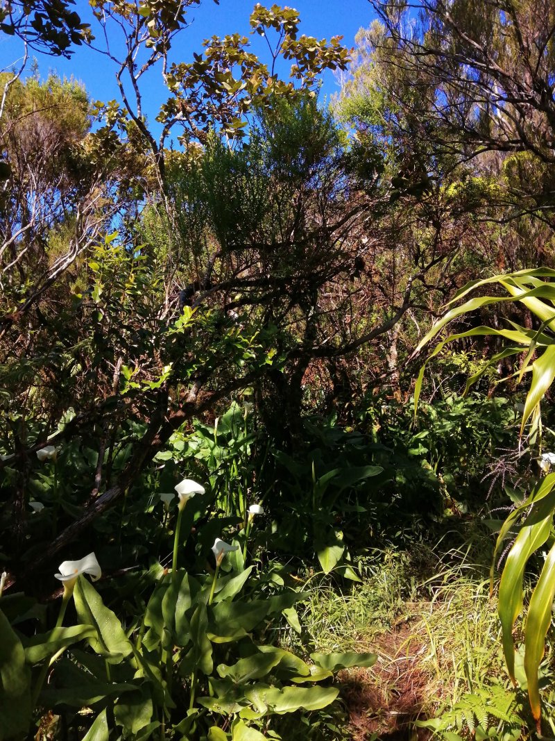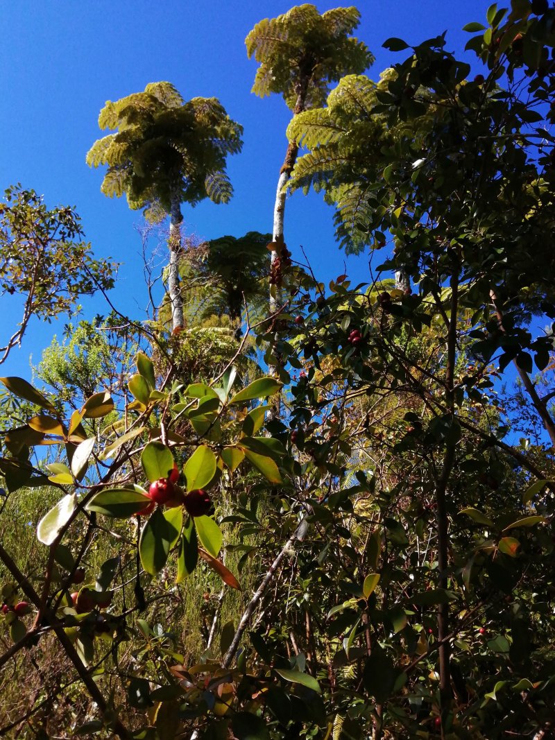 Hélas, comme sur presque tous les sentiers botaniques de la Réunion, aucune pancarte pédagogique ne vient renseigner sur les essences rencontrées. C'est avec un livre sur les plantes ou la page flore de ce site qu'il faudra rechercher le nom des plantes.