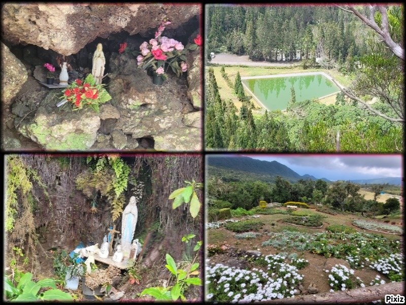 La randonnée débute réellement à 900 m d'altitude mais les difficultés de stationnement imposent de se garer plus bas ou venir en bus. L'astuce consiste à chercher un emplacement à partir du Tapage et de se mettre le long de la route lorsqu'on trouve une place. L'intérêt de stationner plus bas permet de mieux connaître le village du Tapage et celui de la Ligne Chevalier. Après ce kilomètre de goudron entre cases et jardins fleuris, on emprunte une piste de terre bordée de hautes cannes fourragères (photo 1). On repère la Butte Fougères qu'on rejoindra en une demi-heure. La piste se rétrécit et se transforme graduellement en sentier où les hautes herbes ont tendance à le boucher graduellement, heureusement pour une courte distance. Le kiosque, encore marqué sur la carte, a totalement disparu dans la vigne marronne. La grimpée est très agréable, jamais difficile malgré de nombreux lacets (Photo 2) et permet de plus en plus de points de vue sur la vallée du Bras de Cilaos, le Dimitile ou le village du Petit Serré encore à l'ombre pour plus d'une heure (photo 3). Certains passages dans la terre rouge friable peut occasionner des glissades sans danger (Photo 4). La végétation est assez pauvre entre fougères, branles ou chocas (Photo 5). En se retournant, on se régale également des vues sur le Tapage ou la côte vers Saint-Louis et Saint-Pierre (photo 6). Le sentier passe parfois assez près du vide mais la végétation sécurise (Photo 7). Au sommet, un oratoire marque la fin de l'ascension (photo 8). Le sentier est toujours aussi correct à travers les bois de couleurs, branles verts et fougères (photo 9). La descente s'effectue agréablement en longeant parfois des barres rocheuses (Photo 10). Les panoramas sur Cilaos se multiplient et l'on distingue très bien toute la région du Pavillon et la route très sinueuse entourant le Bras de Cilaos (Photo 11). Il descend doucement vers une grande forêt de cryptomerias qu'on aperçoit devant en direction du Piton Cabris (Photo 12). Tout le flanc du piton est recouvert de ce conifère, tout comme du côté de la Fenêtre et du Mapou qu'on distingue très bien (Photo 13). La forêt arrive très vite. Prendre à droite et laisser le sentier de gauche qu'on retrouvera en fin de boucle. Les arbres sont déjà très nombreux et on a parfois l'impression que la nuit tombe (Photo 14). Les racines apparentes peuvent créer des difficultés par temps humide (photo 15). Chaque randonneur tente de marcher là où il y a le moins de racines et ces centaines de passages ont créé parfois un sentier de plusieurs mètres de largeur. De racine en racine, on arrive enfin à une zone sans cryptomerias et le sentier passe à deux mètres d'un kiosque situé au sommet du piton (Photo 16). La descente débute sans transition après la halte casse croûte au kiosque. De hautes marches imposent de faire un peu attention même si les abords dangereux sont sécurisés par des câbles ou des rambardes (Photo 17). Les panoramas sur l'ensemble du cirque de Cilaos durant la descente sont extraordinaires (photo 18). On a devant les yeux 180 degrés du cirque et on distingue à la fois le Grand Bénare, le Dimitile, tous les îlets du Cirque et la ville de Cilaos (Photo 19). La remontée à la Fenêtre est courte, pentue et comporte beaucoup de lacets terreux, sous forme de marches ou de roches (photo 20). On passe deux paliers constitués de courts lacets abrupts. On peut y faire une seconde halte afin d'admirer une dernière fois ce magnifique cirque. Un nouvel oratoire situé dans une petite grotte bordant le sentier annonce la fin proche de la montée à la Fenêtre (Photo 21). L'arrivée à la Fenêtre passe par un grand belvédère très visité, situé à la fin de l'interminable route forestière venant des Makes et portant le nom de Rue Montplaisir (Vu la pente, ne pas confondre avec mon plaisir !). Prendre à droite la première piste dans les très hauts cryptomerias et entreprendre le début de la montée vers le Grand Bénare. Bifurquer à gauche au premier croisement sur une belle piste herbeuse bordée d'arums (photo 23). Ce sentier se termine dans un virage de la RF proche d'un réservoir d'eau. On a retrouvé pour un temps un vieux bois de cryptomerias pour une marche facile (Photo 24). Prendre à droite le sentier parallèle au Bras Mapou puis, un peu plus loin, descendre à travers les pentes de Fleurs Jaunes sur un sentier parfois technique, un peu glissant et comportant quelques lacets (Photo 25). Dans des trouées de la végétation, on peut admirer la belle région des Makes, de Montplaisir, de la Chaine du Bois de Nèfles (photo 26). On rattrape la RF 58 qu'on emprunte à gauche sur une courte distance. Très vite, on trouve le croisement avec la RF 11 des Makes près d'une zone de loisirs "acrobranche". Il est possible de partir à droite en longeant la route. Préférer un retour par la gauche. Marcher en direction de la Fenêtre et trouver, dans le premier lacet vers la gauche, le sentier de raccourci qui descend vers le Bras Patates. Il comporte de multiples sentiers créés par les vététistes et se termine à l'aire de pique-nique fleurie (Photo 27). Emprunter aussitôt le sentier du Bras Patates bien indiqué par un panneau. Plusieurs possibilités de rejoindre le sentier officiel ont été aménagées par l'association. A noter les efforts d'aménagement du départ du sentier de Bras Patates qui, sur plus de 200 m, est fleuri de la route jusqu'au bas du talweg. Descendre et franchir la ravine puis prendre à droite pour remonter en direction de la Plaine du Bois de Nèfles sur un sentier d'abord herbeux puis terreux et en lacets jusqu'au croisement (Photo 28). Au premier croisement, bifurquer à gauche pour retrouver la forêt de cryptomerias laissée en début de boucle. Après avoir retrouvé le sentier remontant au Piton Cabris dans la nuit du sous-bois, la fin du parcours emprunte le même itinéraire jusq