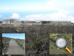 La randonnée débute au Maïdo et emprunte la nouvelle route bétonnée puis le sentier du Grand Bord, très bien indiqué sur la gauche, qui rejoint puis longe au plus près le rempart de Mafate. Il grimpe régulièrement jusqu'au Grand Bénare avec un seul vrai raidillon à mi-parcours. Après un cheminement facile sur de la lave solidifiée totalement inculte, on rencontre une petite montée qui amène à une vierge qui veille sur le cirque ou plutôt qui veillait car elle a été vandalisée ou détruite par les cyclones successifs. La Photo 1 ne pourra donc pas être reproduite avant le remplacement par une autre statuette. Tout le long du rempart, on rencontre de longues et profondes failles qui marquent le futur rempart lorsque tout sera écroulé. Souhaitons que ce soit le plus tard possible car des habitations sont situées beaucoup plus bas à Roche Plate ou Marla. Les pancartes viennent rappeler constamment le danger de les enjamber. Plusieurs emplacements sans failles permettent de profiter des panoramas sur le cirque. Le chemin est très caillouteux, comporte quelques petites descentes mais surtout des montées bordées des brandes classiques de cette région où le grand ajonc d'Europe tient une place importante malgré les nombreuses campagnes d'éradication. Ce sont ces cailloux par milliers qu'il faut fouler ou enjamber qui créent le plus de fatigue et non le dénivelé jusqu'au Bénare (Photo 3). On laisse plusieurs fois des sentiers partant vers la droite et menant à la Glacière. Les panoramas sont variés et toujours splendides quand la végétation ne bouche pas la vue (Photo 6). Une portion un peu plus raide comportant des lacets courts et serrés passe parfois assez près du précipice, toujours dans les cailloux. Comme le sol n'est jamais plat, faire attention de ne pas admirer le paysage quand le sentier passe trop près du bord ou s'arrêter pour le faire (Photo 12). Des antennes ou les derniers petits raidillons qui alternent avec quelques portions de plat annoncent la fin proche de la première partie de la boucle. La végétation s'est raréfiée et on peut admirer à loisir le Cirque de Mafate dans son ensemble (Photo 11) et bientôt celui de Cilaos qui débute aux Trois Salazes (Photo 16). Une fois le Grand Bénare atteint, profiter au maximum de ces paysages uniques à la condition que les nuages ne soient pas déjà installés dans les cirques ou au Bénare lui-même. On voit facilement la Fournaise, la Plaine des Cafres ou le Sommet de l'Entre Deux en plus de tous les panoramas sur les îlets de Mafate aperçus dans la montée. Quelques emplacements entourés de pierres montées en murettes permettent, pour les courageux ne craignant pas le froid, de passer la nuit (Photo 17). Il faut ensuite redescendre par le même sentier jusqu'au croisement qui mène à la Glacière ou emprunter le sentier du Grand Bénare (fermé, en orange sur la carte de la photo 25, mais conseillé si le temps est beau car il ne comporte pas de danger visible qui justifie sa fermeture). Le sol est totalement dénudé et le sentier, encore plus caillouteux que celui emprunté, est très bien marqué (Photo 18). La Glacière s'atteint par une longue descente sur un sentier parfois étroit et toujours parsemé de cailloux de lave. Les randonneurs (ainsi que les baliseurs) ont créé des dizaines de raccourcis qui éroderont petit à petit le flanc de la montagne. Bien profiter de la visite en ce lieu unique pour se renseigner sur l'origine des puits, voir les retenues d'eau au plus près ou dans les roches avoisinantes (Photo 20). Par temps humide, une petite cascade coule même sur un des côtés de la Glacière et maintient le niveau du bassin entouré d'une rambarde (Photo 22). Le retour vers le Maïdo est une plaisanterie face à ce qui vient d'être parcouru sur une piste large et refaite à neuf (Photo 24). Cette piste est même bétonnée de la station de l'observatoire atmosphérique inauguré en octobre 2012 (vois § ci-dessous) au parking.