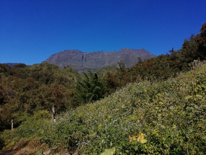 La randonnée débute au parking proche du GRR1 et des serres, un peu après le circuit menant à Trou Blanc. Une vingtaine d'emplacements accueillent les randonneurs qui peuvent se renseigner avant de partir en lisant les panneaux. Du parking, on a sous les yeux le Piton d'Anchain de l'autre côté de la Rivière du Mât ainsi que la Roche Ecrite au loin (Photo 1). Partir vers la rivière en utilisant tout d'abord une piste puis le sentier caillouteux qui descend en lacets vers la passerelle (Photo 2). Depuis la passerelle qui domine la rivière d'une dizaine de mètres, on a de belles vues sur les bassins de chaque côté, les plus impressionnants étant en-dessous (Photo 3). Traîner le pied pour admirer le lit de la Rivière du Mât ou chercher des truites dans les bassins ; vu la hauteur, l'exercice est difficile et les poissons semblent petits, si on a la chance d'en apercevoir. Repérer également pour le retour qui repassera ici, des bassins ou coins agréables pour la pause aquatique (Photo 4). Passer devant l'oratoire à la fin de l'ouvrage et poursuivre par des marches bétonnées qui amènent à la piste en direction de la Mare d'Affouches et du Piton d'Anchain. On laisse quelques champs sur la gauche pour continuer sur la piste jusqu'à une bifurcation. On reviendra par la piste de gauche et on se lance à droite sur le circuit classique du Piton d'Anchain tout près d'un champ de chouchous (Photo 5). On voit bien mieux ce piton qu'on peut coupler à cette boucle à condition d'avoir l'entraînement nécessaire (Photo 6). La balade est facile jusqu'à la Ravine Olivette qu'on traverse sans problème. Puis le sentier remonte de plus en plus dans les filaos, pestes végétales, goyaviers ou cultures. En se retournant, c'est le festival de points de vue sur le Gros Morne qu'on ne quittera pas de la matinée (Photo 7). Cette montée moyenne arrive plus haut à un oratoire proche du sentier partant sur la droite vers le piton d'Anchain. Emprunter la piste partant sur la gauche. Cette piste est large, bien entretenue et couverte d'herbe et de cailloux (Photo 8) mais hélas, plus loin, bordée de nombreuses espèces de plantes. On rencontre un oratoire sur la gauche de la piste à mi-distance entre le sentier du Piton d'Anchain et le sentier numéro 3 du Trail de Salazie. 300 mètres plus loin, la piste oblique sur la gauche et un sentier part sur la droite. L'emprunter et entamer une longue descente qui débute sous les filaos pour un parcours ombragé (Photo 10). Ce parcours numéro 3 est agréable dans les bois de couleurs et fougères (Photo 11). Au prochain croisement, il est possible d'emprunter la piste partant à gauche ou poursuivre jusqu'à la Ravine Camp Henry sur un parcours toujours aussi propre (Photo 12). On a devant les yeux le modeste Piton de la Mare d'Affouches avec au loin les petites cascades de la Ravine Camp Henri (Photo 13). Au loin, on devine la route forestière du Col des Bœufs (Photo 14). Après avoir franchi le gué, on a droit à une large piste qui chemine en lacets parmi de très nombreux petits champs de piments, tomates, citrouilles ou maïs. Depuis ces champs, on peut observer l'exhaustivité des pitons du cirque. Les chouchous cachent presque le triangle du Cimendef (Photo 16) et le Gros Morne est désormais devant soi (Photo 17). La piste est toujours large et propre puisque régulièrement parcourue par les camionnettes ou 4x4 des agriculteurs. Une fois passée la zone des cultures on pénètre dans des plantations de filaos et l'on rencontre même un grand verger d'agrumes. La piste, moins employée se couvre parfois d'herbe mais on ne se pose pas de question sur l'itinéraire (Photo 18). Les cultures abandonnées il y a quelques années ne se voient plus car elles sont désormais recouvertes de toutes les invasives du cirque (Photo 21). Et les longoses, comme partout, ne pourront jamais être éradiquées à moins qu'une maladie rare ne vienne les décimer (Photo 22) ! Le tour complet du Piton de la Mare d'Affouches est bientôt terminé. A l'approche du GRR1; il a l'air d'une petite colline dépassant des bois qui l'entourent (Photo 23). La dernière partie est un peu envahie de hautes herbes avant de trouver sur la droite des ruines d'habitations, envahies de galaberts qui ne peuvent plus guère servir d'abri en cas de pluie. On retrouve un peu plus loin le GRR1 qui file à droite vers Grand Sable et à gauche vers l'Îlet à Vidot, d'abord sur l'herbe courte puis sur les cailloux (Photo 24). Suivre tranquillement le sentier qui descend calmement jusqu'aux premières cases de l'Îlet de Mare d'Affouches, entouré de petits champs divers. Les quelques familles vivant de l'agriculture habitent ici au calme mais éloignées de tout. Il vaut mieux ne pas oublier la bouteille d'huile ou le pain pour le repas du soir ! Un kiosque entouré de fleurs permet de se reposer à l'ombre si nécessaire (Photo 25). Profiter, durant la descente, des superbes panoramas sur le Piton d'Anchain ou sur le hameau de Trou Blanc de l'autre côté de l'étroite vallée de la Rivière du Mât. Poursuivre la descente sur une piste poussiéreuse bordée de champs et de hautes herbes (Photo 26). A l'approche de la Rivière, la piste file sur la gauche près de petits champs et d'une case (Photo 27). C'est le moment de décider d'effectuer une balade le long des berges de la rivière à moins de poursuivre par la passerelle qu'on a employée quatre heures avant (Photo 28). Le véhicule attend au parking après avoir franchi les courts lacets pierreux jusqu'à la serre.