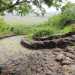 La randonnée commence par la forte pente du Chemin des Cèdres bordé de cases et d'élevages cachés derrière quelques tôles ondulées. Le chemin pavé débute à la fin de la route près d'un panneau très instructif sur les chemins pavés de la région. La montée débute sur une portion assez plate et en très bon état permettant d'étudier l'ingéniosité de la construction de l'époque (Photo 1). La pente en face est couverte d'épineux et de tamarins reconnaissables à leur feuillage vert au milieu de la savane. Dès le premier virage, on remarque sur la gauche plusieurs traces partant en direction de la Ravine Athanase mais le cheminement n'est pas très aisé sans réhabilitation des autres portions pavées. Quelques virages successifs permettent de monter assez rapidement pour dominer l'étang Saint-Paul qu'on distingue très bien en raison de l'absence de végétation (Photo 2). Puis la pente s'intensifie et coupe un peu le souffle. De grands tamarins des bas procurent de l'ombre (Photo 3). Puis ce sont de courts lacets ou quelques raccourcis qui escaladent la pente de plus en plus difficile (Photo 4). Le sol devient très pauvre et rocheux. Les chèvres aiment s'y promener à le recherche des rares herbes poussant en période humide (Photo 5). Après l'oratoire, les vues sur Saint-Paul, l'étang ou la tranchée couverte se multiplient (Photo 6). De l'autre côté de la Ravine Divon, les habitations de Crève Cœur ont envahi tout le haut du rempart (Photo 7). Deux zones de repos ont été aménagées avec quelques ouvrages en bambou qui ne résisteront pas au prochain cyclone (Photo 8). Il y a même un point d'eau pour les courageux supportant les pique-niques en période de forte chaleur. La pente pavée se termine en quelques mètres comme elle a commencé et l'on se retrouve en ville. Emprunter quelques mètres du Chemin Savane puis obliquer immédiatement à gauche sur le Chemin Pavé Lougnon sur sa partie goudronnée. Rejoindre le terrain de sport desséché et le longer en restant sur la droite (Photo 9). Impossible de manquer le sentier qui débute au coin du terrain et file en direction de la ravine entre  poivriers et acacias (Photo 10). Comme la boucle est assez courte, il est facile de trouver le sentier partant sur la gauche et se dirigeant vers les quelques rares habitations en aval du Chemin Morel. Le demi-tour s'impose pour éviter de traverser des propriétés privées mais cet écart permet de constater combien de gens aiment s'isoler du monde. Une fois de retour sur le sentier principal, remonter vers Bellemène sur de nouvelles portions pavées de bonne qualité (Photo 11). Avant les premières habitations, le regard est attiré par un panneau en bois indiquant le sentier de la Source. Ne pas hésiter à prendre à droite et marcher sur les roches entre les grands bambous pour rejoindre très vite le fond humide de la Ravine Athanase. Quelques oratoires occupent le lieu dont un, original, dédié à trois prêtres (Photo 12). La source d'eau fraîche coule très modestement pour arroser les surfaces occupées par des taros (Photo 13). Rejoindre le Chemin Cassis en prenant garde aux chiens montrant les crocs au moindre passant. Puis on rencontre le Chemin Morel qu'on peut suivre jusqu'à la D4. Un petit raccourci ombragé se prend à l'Impasse des Ronces (Photo 14). Encore un vestige pavé qui fait gagner du terrain et permet d'agréables rencontres avec des habitants. Prendre à gauche à la D4 puis marcher vers le nord. Passer devant un petit temple tamoul (Photo 15) puis devant l'école du village. Des déchets encombrent les abords malgré des panneaux destinés à dissuader (Photo 16). Après la Ravine Renaud, la route se divise en deux. Prendre à gauche le Chemin Macabit et marcher jusqu'au départ du sentier bien indiqué par de nombreux petits panneaux. Il plonge en direction de l'Etang Saint-Paul et du Port au milieu des grandes herbes (Photo 17). Plus bas, la marche s'effectue un peu à l'ombre des poivriers mais sur de courtes distances. On retrouve très vite une large piste, bordée de murets, dominant toute la plaine (Photo 18). On a sous les yeux toute la ville de Saint-Paul et l'ensemble de la réserve naturelle nationale de l'Etang Saint-Paul (Photo 19). La piste descend constamment sur un sol très caillouteux, terreux donc poussiéreux (Photo 20). Les lacets s'intensifient et il est parfois possible d'emprunter des raccourcis (Photo 21). Ces lacets prennent fin à la station de pompage entourée d'un grillage. En prenant à droite, il est possible de rejoindre le Ravine Tête Dure et rallonger un peu la boucle qui passera obligatoirement au moulin à eau de la Source du Tour des Roches. En contournant le grillage par la gauche on se retrouve, après une forte descente technique sur roches poussiéreuses, à la route de la station (Photo 22). On regrette très vite que la barrière située en début de route ne soit pas baissée, car à voir les déchets transportés ici impunément, on se demande si l'achat d'un cadenas ne préserverait pas notre environnement. Au dernier virage, lorsque l'on aperçoit cette barrière levée, trouver le sentier partant sur la gauche au milieu des acacias, prunes de Madagascar et épineux (Photo 23). Les lianes qui font des ravages en recouvrant toute la végétation ont elles-mêmes subi les ravages du soleil et de la sécheresse (Photo 24). Hélas, les plantes étouffées ne reverront jamais le jour. Le sentier se termine entre de très modestes cases avant de rejoindre la route du Tour des Roches. La fin de la boucle emprunte obligatoirement cette petite route qui a également mal vieilli malgré quelques touffes de couleurs par ci par là (Photo 25). On retrouve les ordures, les masques de protection Covid et aussi toutes les feuilles tombées des palmiers et cocotiers qui bordent la route (Photo 26). La circulation est peu importante et la marche s'effectue donc sans grand danger le long des cana