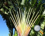 L'arbre doit son nom, ainsi que son nom anglais "traveller's tree" au fait que la base naviculaire des feuilles disposées de façon dense renferme environ 1,5 litres de liquide que l'on peut recueillir en cas de besoin en perçant la base des feuilles.