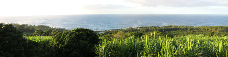 La randonnée débute à l'entrée du village de Mare Longue en venant de Saint-Joseph. Ne pas manquer la visite des deux chapelles proches du sentier au retour. On attaque directement dans les bois par le sentier qui évite d'emprunter la totalité du Chemin de Ceinture ou la route commençant près du Jardin des Parfums et des Epices. Le sentier est facile. Il serpente un peu entre les filaos pour éviter des petites grottes ou effondrements. Sur le côté, impossible à manquer, des pieds de vanille occupent le moindre tronc (Photo 2). En marchant le matin, on peut rencontrer le propriétaire qui vient, muni de son aiguille, pour fertiliser les fleurs du lever du jour. Ils sont rarement avares en explications si on s'intéresse à cette culture et qu'on prend quelques minutes pour discuter ou assister à l'opération. Plus loin, le sentier est assez droit dans une végétation de bois de couleurs des bas. Le sentier, bordé de fougères, est la plupart du temps couvert de lave pour une marche assez facile (Photo 3). Il rencontre le Chemin de Ceinture dans un lacet puis repart vers le nord, toujours dans des sous-bois agréables (Photo 4). Prendre à droite en arrivant la prochaine fois au Chemin goudronné. Très vite, on traverse un petit hameau de quelques cases entourées de jardins fleuris. On bénéficie de nombreux panoramas sur l'océan et la côte boisée de filaos (Photo 5). Les vues sont en général dégagées tout au long de la montée légère sur une route étroite mais agréable et sans circulation. Quelques vacoas (pandanus) poussent en bord de route (Photo 6). Ne pas pénétrer dans la clairière où une vingtaine de ruches accueillent des milliers d'abeilles en plein travail (Photo 7). On est bien sur un trajet pour amateur de route (Photo 9) et de canne à sucre qui pousse ici à perte de vue (Photo 8). Au-dessus des champs dépasse le modeste cratère du Piton d'Arzule, recouvert de forêt (Photo 10). On se retrouve à la verticale de Saint-Philippe qui sera contourné en fin de boucle (Photo 12). On marche à quelques mètres seulement du Parc National et il y a de moins en moins de canne sur la gauche de la route mais beaucoup de bois de couleurs (Photo 13). La route, toujours aussi étroite se met à monter en lacets d'une cinquantaine de mètres, en ne quittant bien sûr pas les cannes. Puis elle reprend une trajectoire assez plate. Après le piton, c'est la ravine qu'on traverse sans s'en rendre compte (Photo 14). D'avoir grimpé un peu avec les lacets, on est plus près du Piton d'Arzule qu'on revoit souvent au-dessus des cannes (Photo 16). La piste se met à tourner à droite à partir d'un lacet. C'est le début de la descente. On voit très bien le point de chute dans la capitale du Sud Sauvage (Photo 17). Il y a toujours autant de canne à sucre mais on rencontre quelques cocotiers et bananiers pour changer un peu (Photo 18). Les lacets de plus en plus longs permettent de descendre sans effort. La route passe près de quelques petites propriétés disséminées dans cette campagne. On franchira six fois cette fameuse Ravine d'Arzule grâce aux nombreux lacets. Elle est parfois assez rocheuse. Une précédente fiche permettait de regagner le lotissement des Sables en traversant les cannes. Certaines pistes étant privées depuis, cette boucle emprunte désormais la totalité du Chemin de Ceinture. En arrivant à la RN2 après cette quinzaine de lacets, il est possible de partir en face par la Rue de la Pompe et raccourcir la boucle. Sinon, prendre à gauche et filer vers Bois Blanc en prenant garde à la circulation. La circulation est beaucoup plus importante et il faut un bon quart d'heure pour rejoindre le lotissement des Sables Blancs, entre la route et la mer. Longer la Rue Isnelle Amelin ou Pierre Bérégovoy jusqu'à la seule trouée rencontrée entre les maisons et y dénicher le petit sentier dans les fougères qui rejoint en une cinquantaine de mètres le Sentier Littoral de Saint-Philippe (Photo 19). Le plus difficile est terminé. Il suffit désormais de suivre ce sentier ou les sentes parallèles des pêcheurs pour regagner Saint-Philippe. Le sentier effectue des zigzags en fonction de la côte très découpée du Sud Sauvage. Les vacoas ont agréablement remplacé la canne à sucre (Photo 20). Près de la mer, les grandes herbes tentent parfois d'envahir le passage mais le sentier est fréquenté et on passe sans problème (Photo 21). Quand la mer semble plus belle qu'ailleurs, délaisser le sentier pour suivre les traces de pêcheurs en direction des falaises. Repérer les souffleurs au bruit du rejet de l'eau par la pression (Photo 22). La mer est toujours forte dans cette région et les vagues créent parfois de belles éclaboussures sur les basaltes de la falaise (Photo 24). Comme souvent dans le sud, on traverse de belles zones couvertes d'un magnifique gazon fin endémique et qui semble toujours tondu de la veille (Photo 25). Le littoral de Saint-Philippe est agréable même s'il ne comporte pas de plage (Photo 26). On parvient à la Pointe de la Mare d'Arzule, tout près de l'embouchure de la ravine qu'on franchit pour la septième fois. Comme la boucle est presque terminée, tenter une balade sur les laves parfois dangereuses du Quai de Carangue ou de la Marine pour dénicher bassins, coquillages ou poissons s'il y a de l'eau dans les bassins. Il ne faut qu'une minute pour rejoindre la Marine, une étroite bande bétonnée permettant la mise à l'eau et la sortie des bateaux de pêche (Photo 27). Tout près également, le monument à la mémoire des disparus dans le naufrage du Warren Astings en 1897. Il ne reste plus que 600 mètres à effectuer. Ils peuvent se faire par la route si la circulation est faible ou par la mer comme dans la randonnée de la boucle du Baril à Mare Longue.